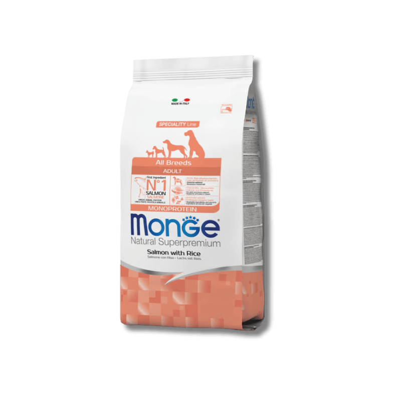 זון יבש איכותי סופר פרימיום מתוצרת איטליה, מכיל סוג אחד של חלבון מי החי, מתאים לכלבים בוגרים מכל הגזעים – עם בשר סלמון כרכיב ראשון. מוצרי MONGE סופר פרימיום לכלבים מבוססים על מחקר, פיתוח וניסיון ארוך למעלה מ 50 שנה