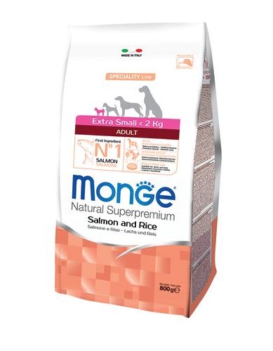 מזון יבש איכותי סופר פרימיום מתוצרת איטליה, מתאים במיוחד לכלבים בוגרים מגזעים זעירים עד 2 ק"ג! עם סלמון ואורז 2.5 ק"ג מוצרי MONGE סופר פרימיום לכלבים מבוססים על מחקר, פיתוח וניסיון ארוך למעלה מ 50 שנה. נוסחאות התזונה של מונג