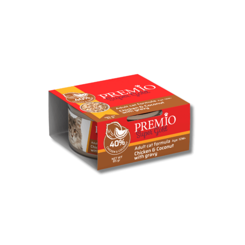פרמיו סופר גולד מעדן נתחוני עוף ואגוז קוקוס ברוטב 85ג
