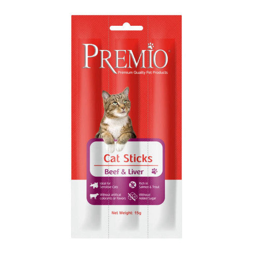 פרמיו סטיק 15 גרם לחתול בטעם בקר וכבד - premio